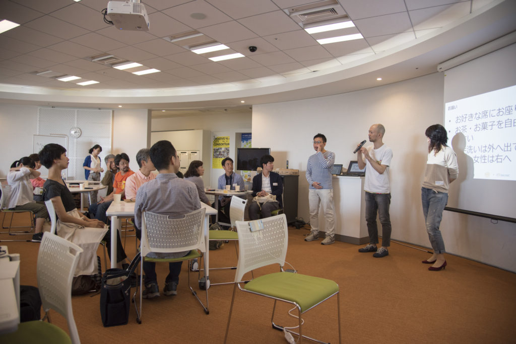 最初の挨拶。私が緊張気味ですね…笑。(私と中島さんは研修をやったりする割には人前に出るのが苦手な方で…難しいこと考えていたり(←中島さん)、ぼーっと内省してたり(←私)するのが好きなタイプです。