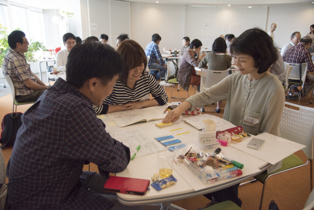 カードを使って模擬会議。テーマは「チェックイン・チェックアウトを会議に取り入れるには?」で行いました。別にカードを使わなくてもチェックイン、チェックアウトを会議に取り入れられたらそれだけでもグッとそのチームは良くなりますよ。
