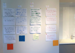 書いたものは休憩中に壁に貼っておき、見れるようにしておきました。