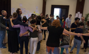 ここまでで対話は終了。全員でサークルに戻ります。(3ラウンドそれぞれ20〜25分ずつくらい時間をとりました。) テーマオーナ