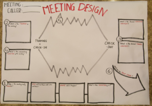 ・人数が多い場ほどデザインがものをいう(場の設計という意味) また言語の差がある参加者の場合は視覚的に理解してもらう手段をなるべく取り入れる。