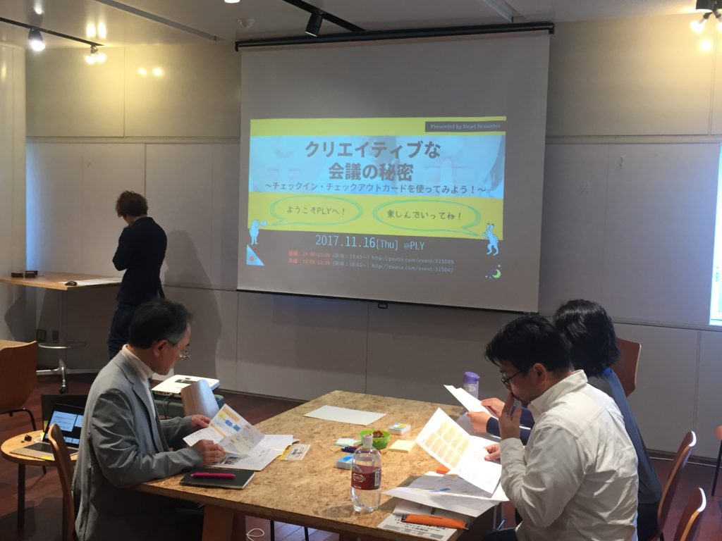 先日の16日に富士通の有志団体NewENcounterの方に主催をしていただいて、クリエイティブな会議の秘密〜チェックイン・チェックアウトカードを使ってみよう〜 を行ってきました。