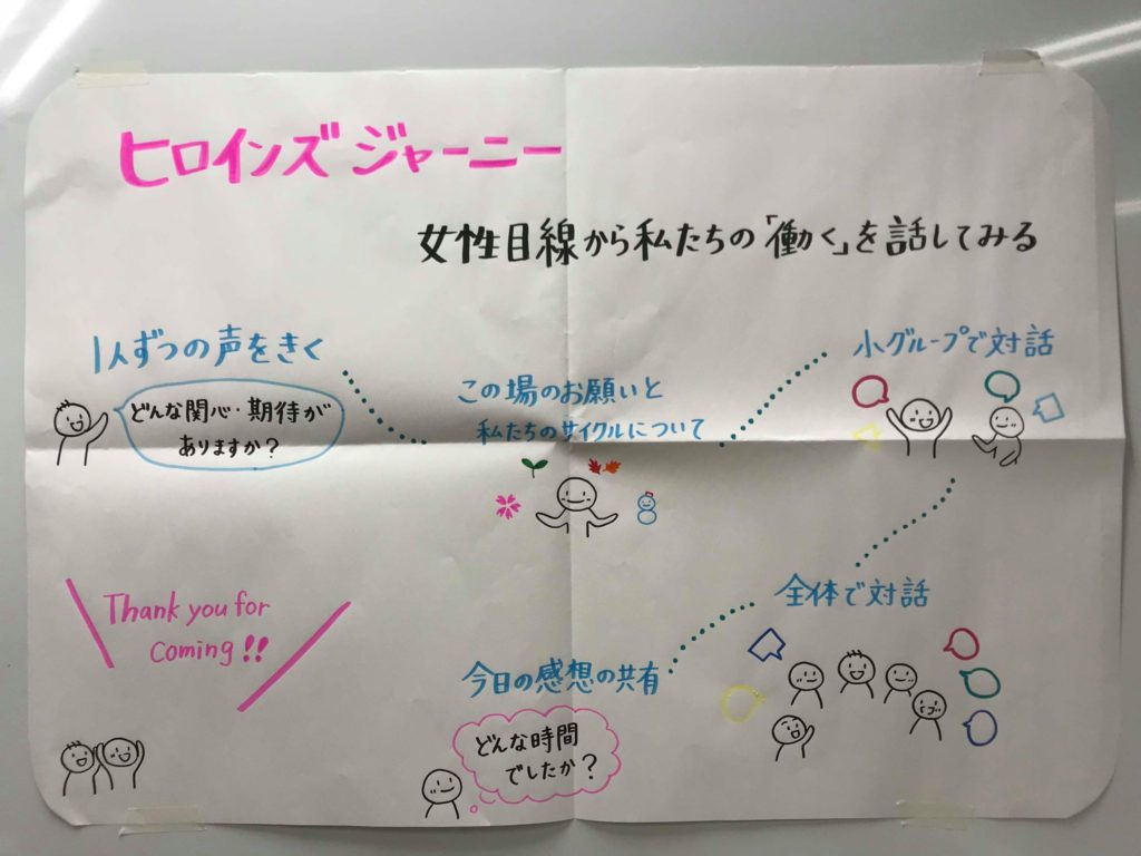 昨日はヒロインズ・ジャーニー 〜 女性目線から私たちの「働く」を話してみる 〜を開催してきました。 今回は、企画者の1人である、ゆりえさんが「普段、職場が男性ばかりなので女性だけで話をしてみたい」という気持ちからスタートしているため、「女性だけで話をしてみませんか」という、ゆるい枠組みで開催しました。